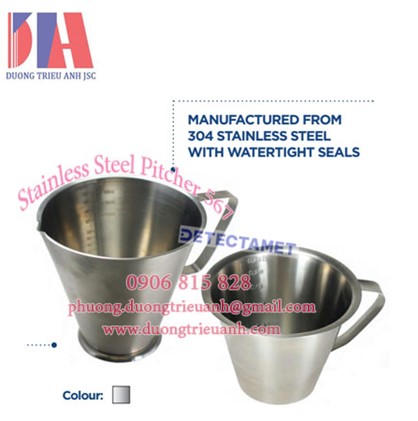 Hãng Detectamet (Anh Quốc) chuyên sản xuất về dụng cụ kim loại & nhựa có thể phát hiện bằng máy dò kim loại và X-ray, chuyên dùng trong ngành thực phẩm, dược phẩm, mỹ phẩm và sản xuất công nghiệp. Bình đong bằng thép không gỉ 304 này phù hợp với mọi yêu cầu chế biến thực phẩm.
