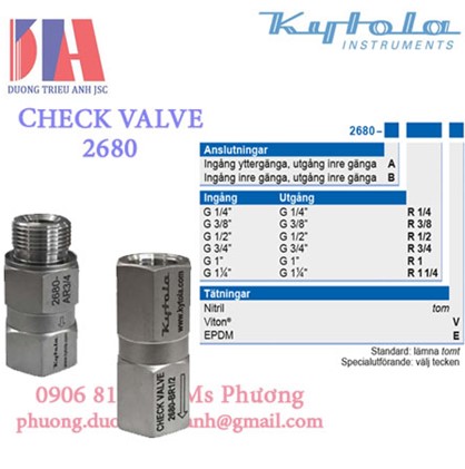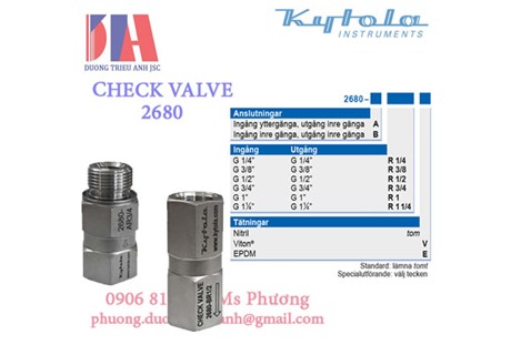Van một chiều KYTOLA® Model 2680 là một thiết bị lò xo, cho phép dòng chảy tự do của môi chất theo một hướng nhưng đóng ngay lập tức khi dòng chảy dừng lại hoặc đổi hướng.