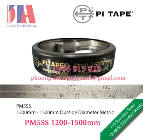 Pi Tape PM5SS 1200-1500mm là thước đo đường kính ngoài (Outside Diameter Tape) theo hệ mét, được sản xuất bởi Pi Tape (USA) chuyên thước đo đường kính và chu vi có độ chính xác cao. Thước đo đường kính ngoài Pitape phù hợp cho các ngành cơ khí chính xác, sản xuất ống, thép cuộn, xi lanh, trục lớn, bồn chứa và các thiết bị công nghiệp yêu cầu tiêu chuẩn đo lường nghiêm ngặt.