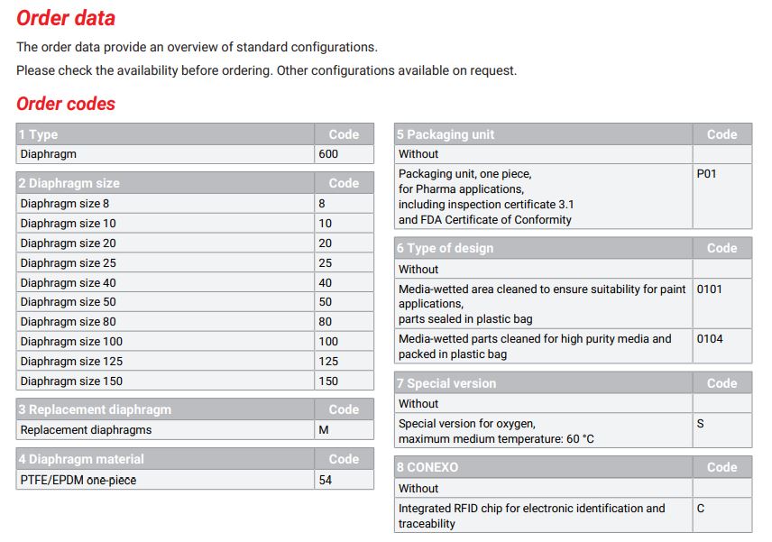 • Diaphragm sizes: 8 l 10 l 20 l 25 l 40 l 50 l 65 l 80 l 100 l 125 l 150
